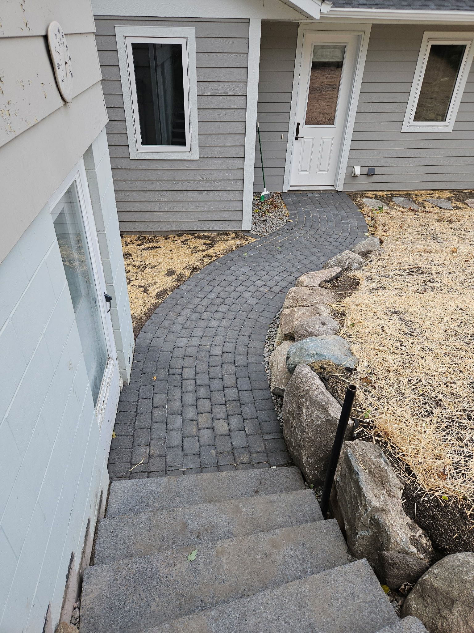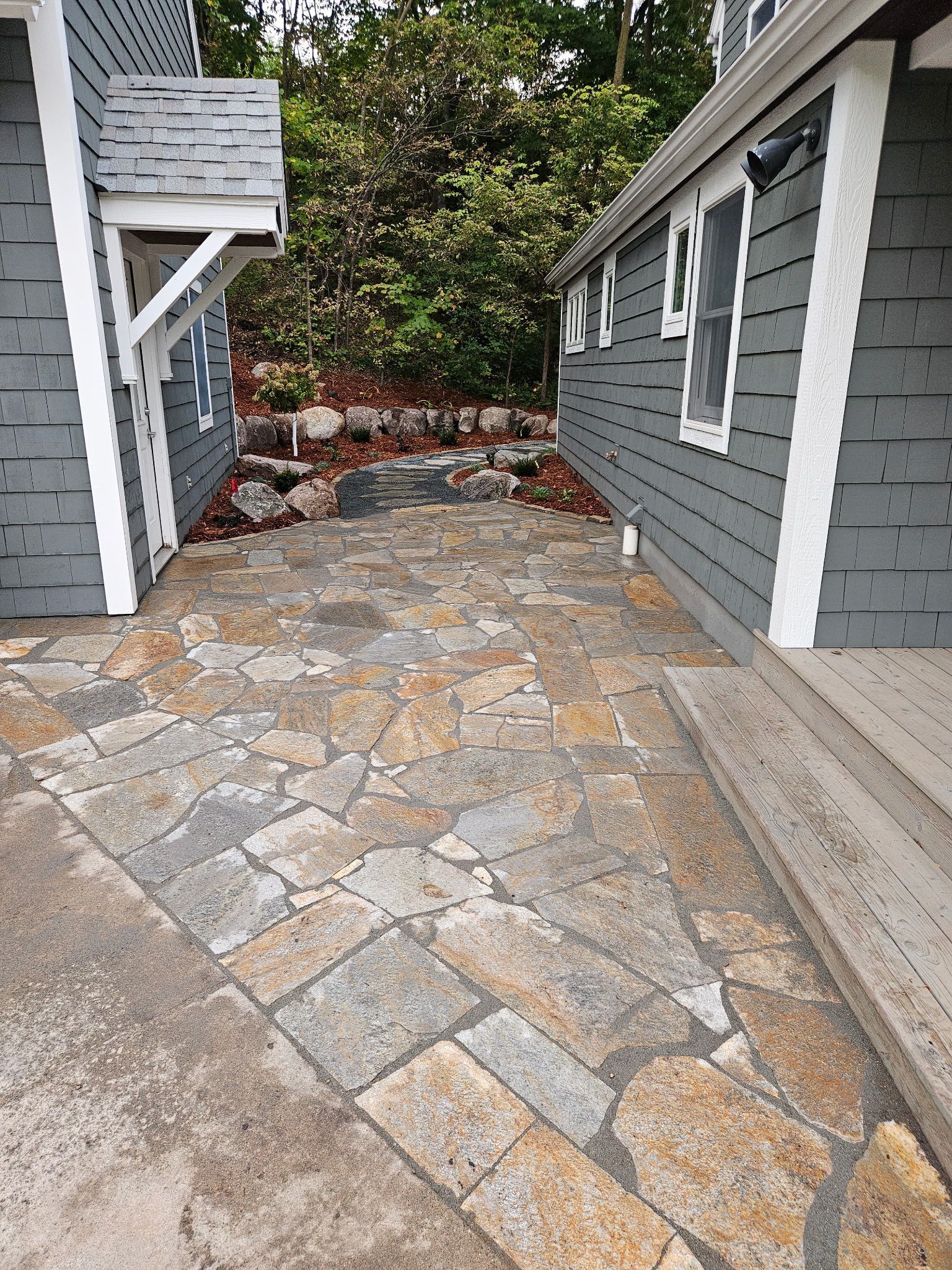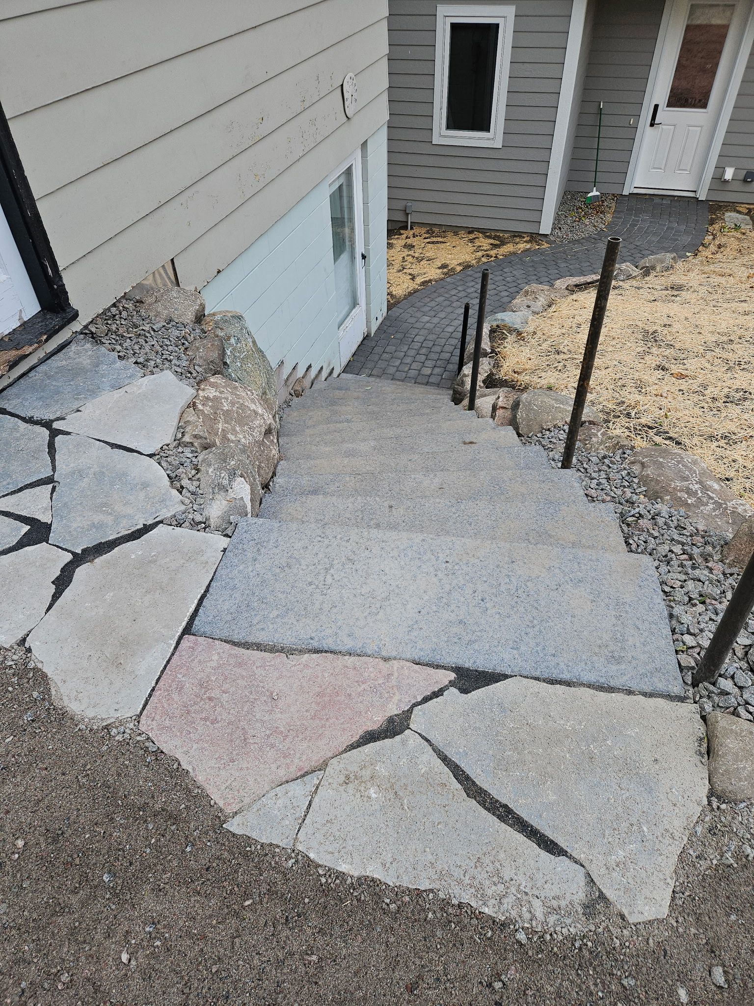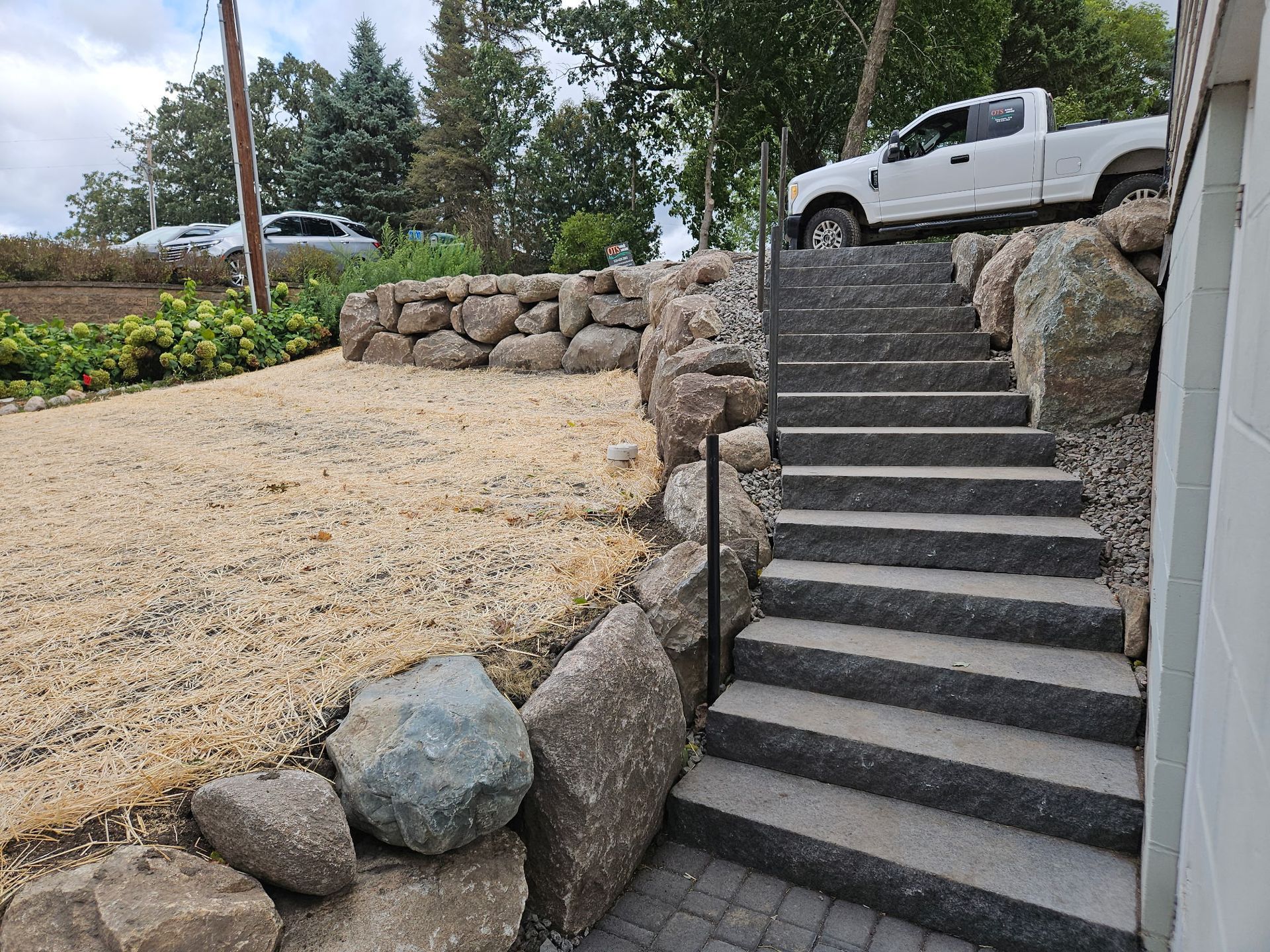 Granite Walkway, Boulder Walls, and Steps