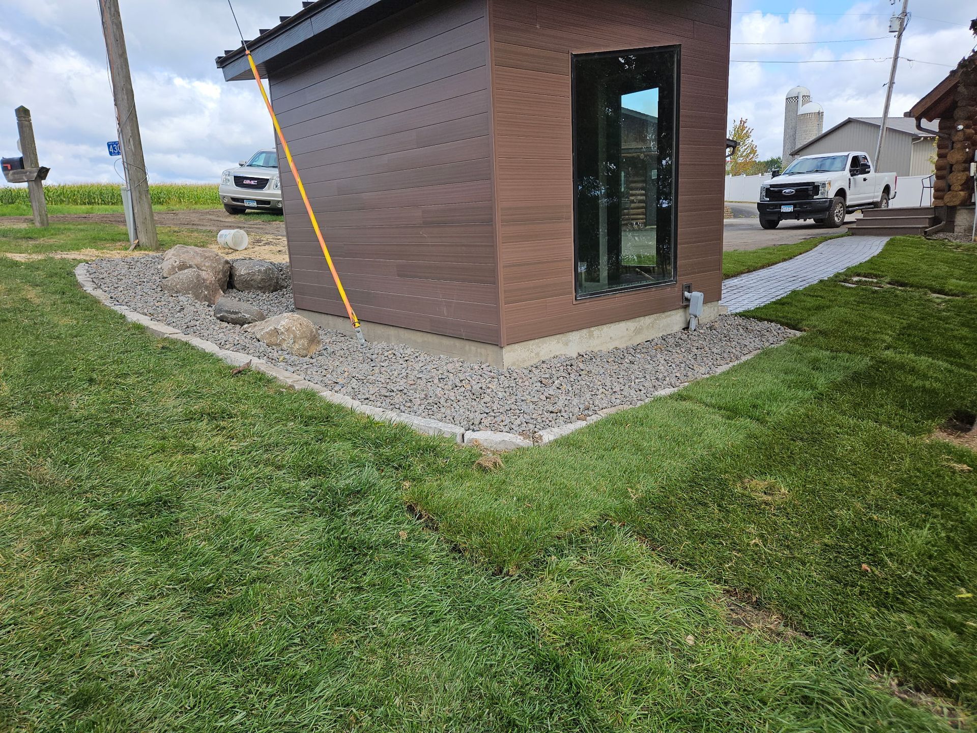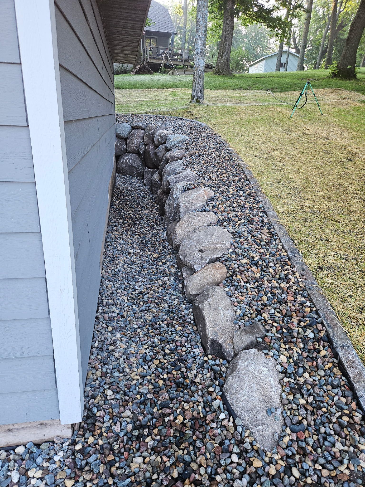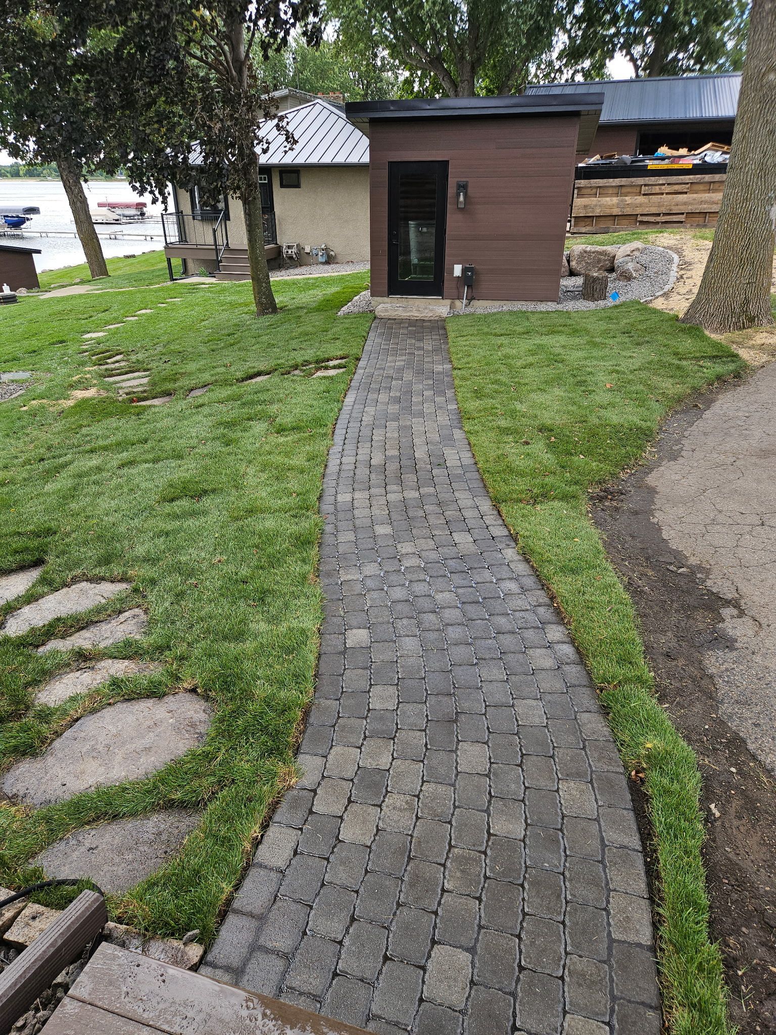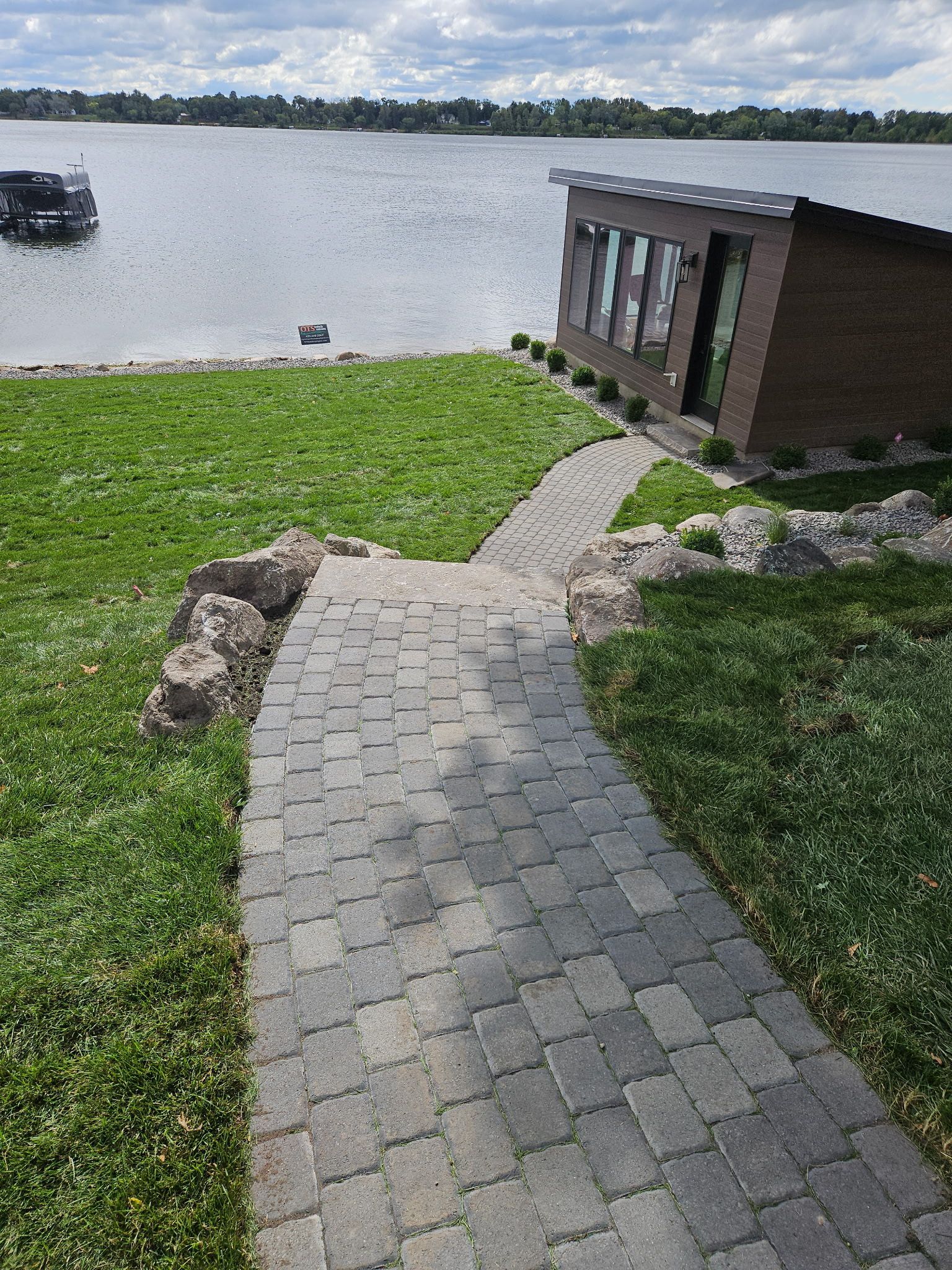Boathouse and Sauna Project - Boulder walls, walkways, steps, and lawn in Maple Lake, MN