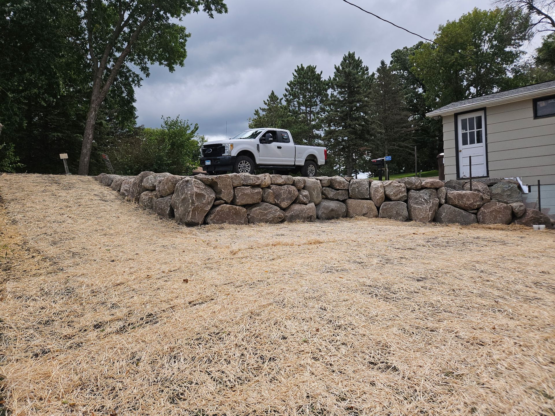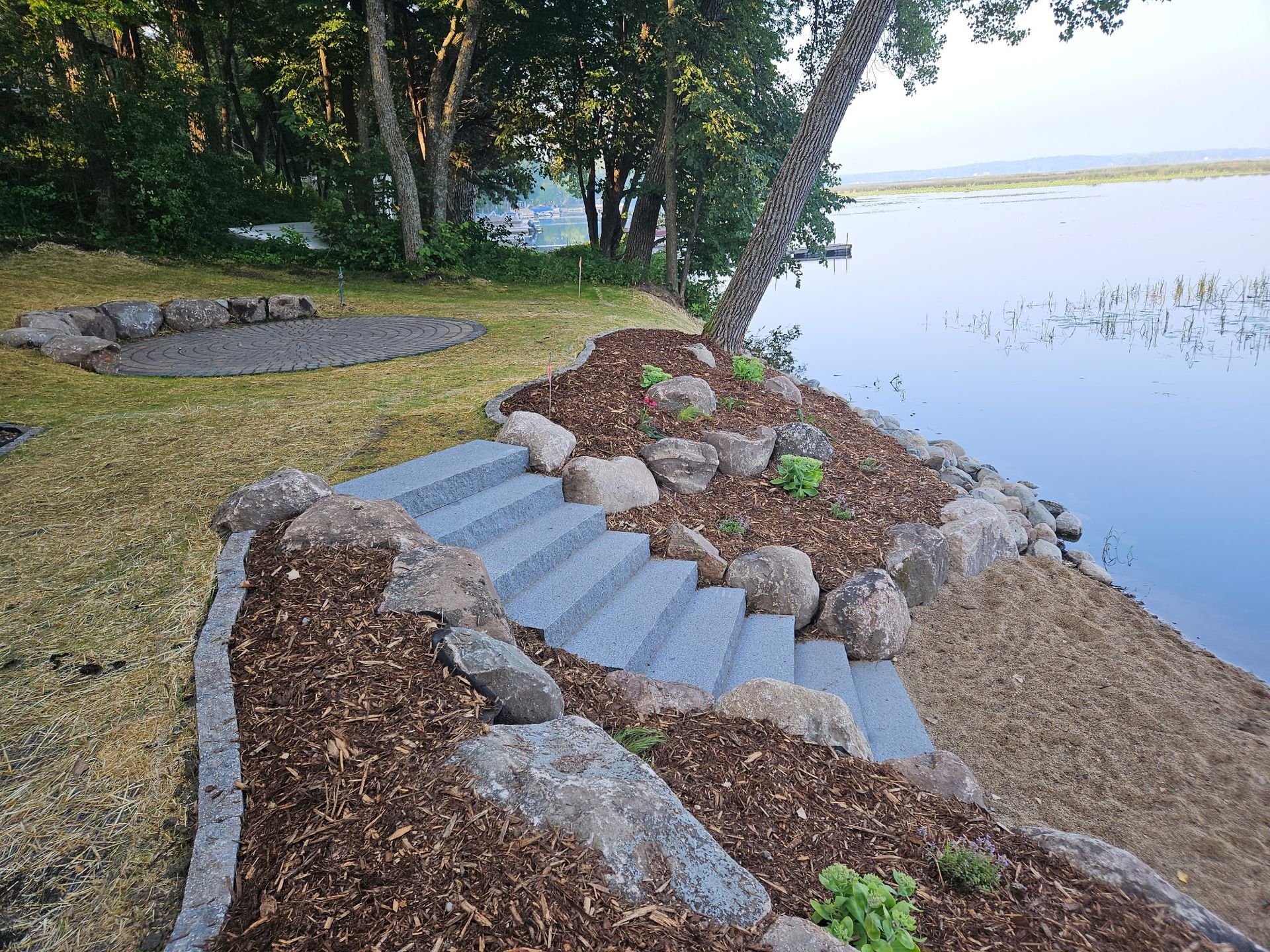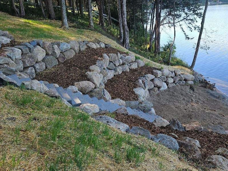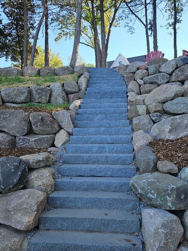 Boulder walls, steps and a walkway on Cedar Lake!